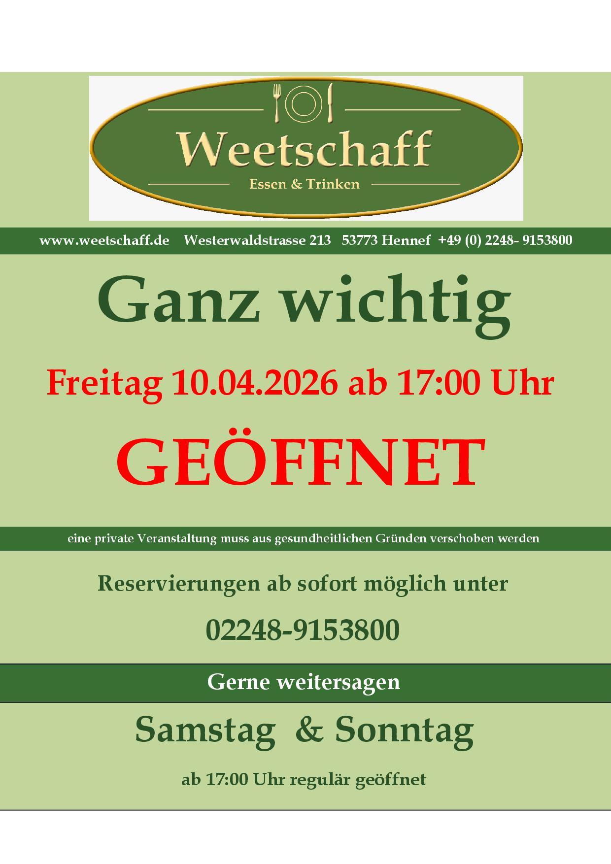 „Weetschaff“ Essen & Trinken in Uckerath